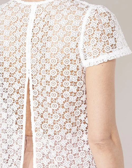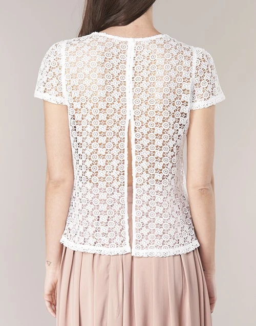 Esta blusa blanca con detalles de encaje es uno de los modelos de la colección especial matrimonio «Call me Madame» de Betty London. Delicada, femenina y agradable de llevar, se asocia maravillosamente con faldas y pantalones… ¡y para todas las ocasiones!